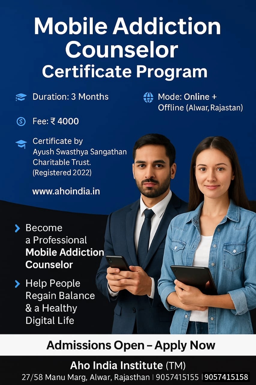 With AHO India’s Mobile Addiction Counselor Program, you’ll be trained in evidence-based techniques, guided by experts, and learn culturally-adapted strategies to address tech addiction in the Indian context.