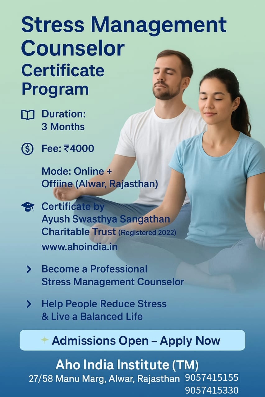 Through AHO India’sStress Management Counselor Program, you’ll learn practical techniques, scientific approaches, and real-world tools to guide others toward lasting mental well-being and resilience.